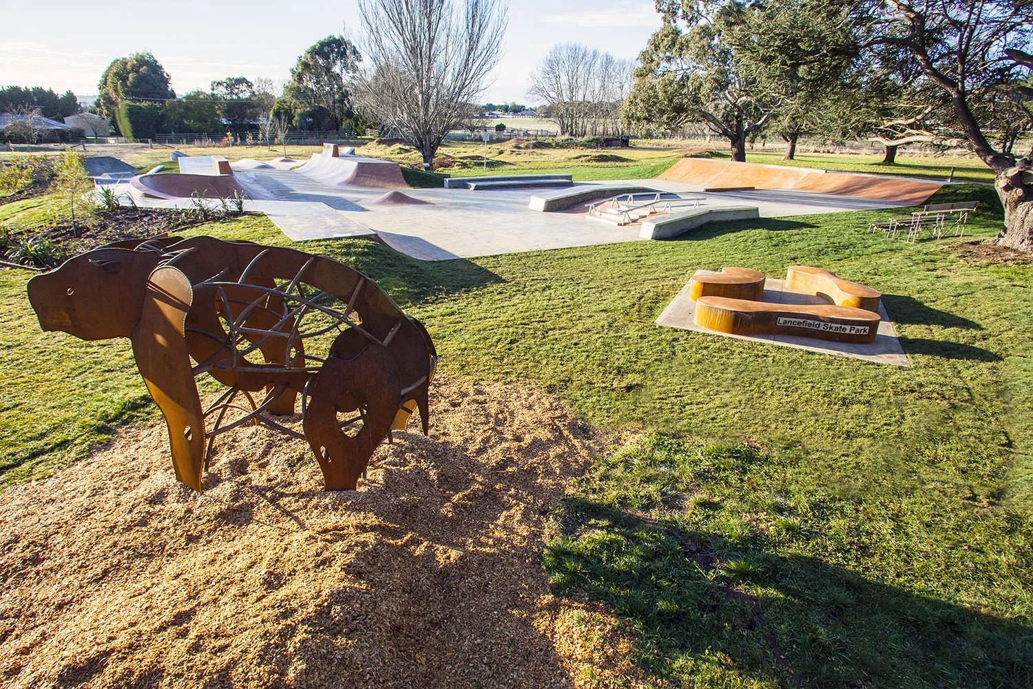 Lancefield Skate Park is located off Chauncey Street, Lancefield. It features street and transition elements that makes for a varied, well planned and built skate park. Featuring a fun box, quarter-pipe, pump track, snake run, hubbas, rails, and stairs this park has plenty to offer skaters. One distinguishing feature of this park is the half-pipe of 12 metres long that connects to a unique ending area, however not the smoothest surface. Lancefield Skatepark is a benchmark for new skateparks and offers a lot to modern day skateboarding with a great flow throughout the park.
